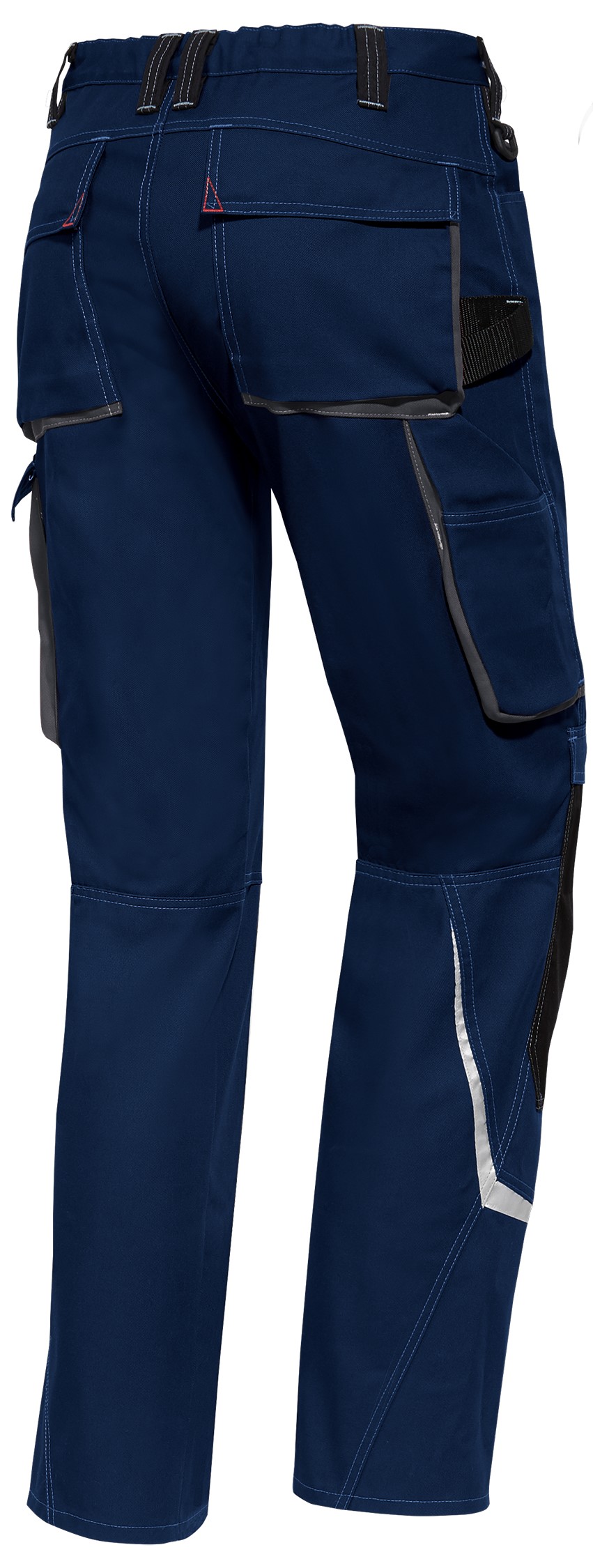 - 1 geräumige Schenkeltasche mit aufgesetzter Smartphonetasche, freihängende doppelte Zollstocktasche, Reflexelemente am Bein