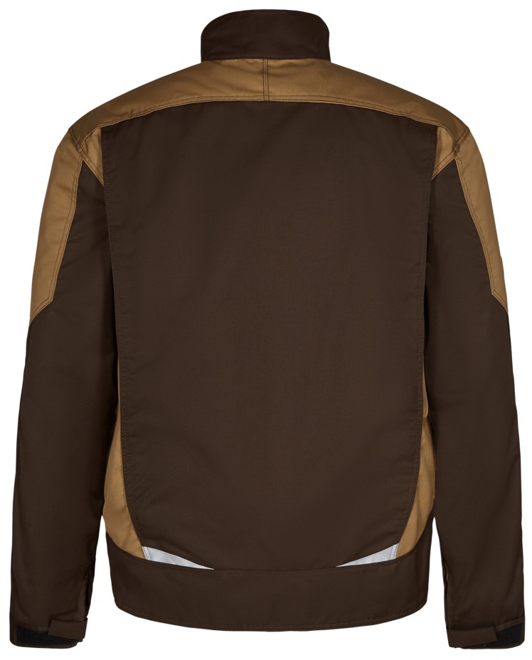 Funktionelle Arbeitsjacke mit vielen Details. Verlängerte Rückenpartie mit Bewegungsfalte. Verdeckter Reißverschlussvorn. Zwei geräumige Einschubtaschen. Zwei Brusttaschen mit Patte – rechts mit Schlaufe und D-Ring zur Befestigung einer ID-Karte und mit zusätzlicher Reißverschlusstasche fürs Handy. Zwei große Innentaschen mit Klettverschluss. Verstellbare Ärmelbündchen. Reflektoren vorne und am Rücken für mehr Sichtbarkeit. Für Industriewäsche geeignet.