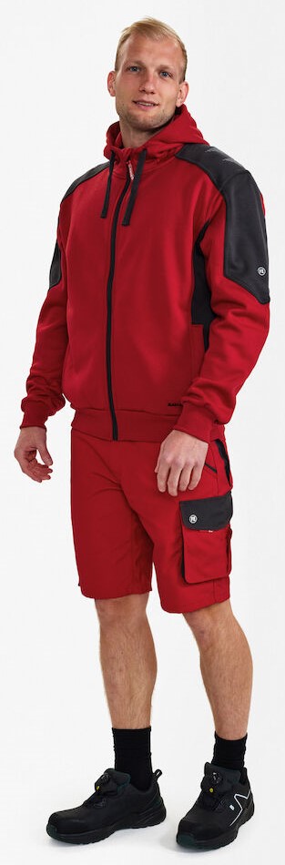 Funktionelle und angenehm zu tragende Sweatcardigan aus Jersey, innen mit geklebtem Fleece. Frontreißverschluss. Zwei große Einschubtaschen mit Reißverschluss. Strickbündchen an Bund und Ärmeln. Gute Sichtbarkeit durch reflektierenden Aufdruck auf den Schultern.