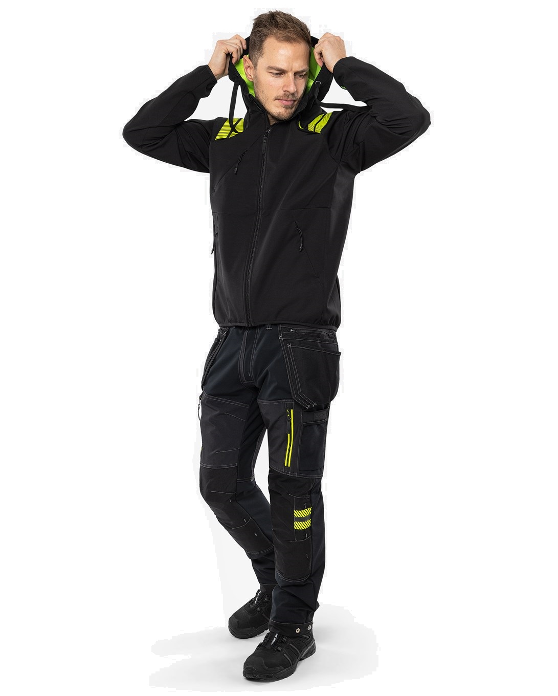 Funktionelle Softshell-Jacke mit Kapuze für moderne Handwerker. Winddichte, wasserabweisende und atmungsaktive Stretchjacke für optimale Bewegungsfreiheit und Komfort. Ganzjährig tragbar. Konzept: Tyresta