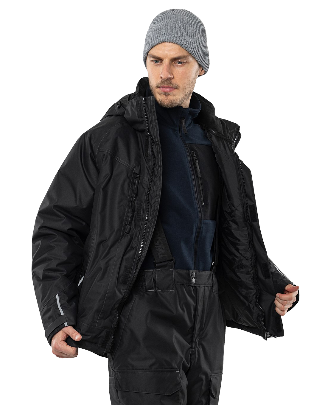 Wasserdichte Winterjacke aus winddichtem und atmungsaktivem Airtech®-Material mit verschweißten Nähten. Funktionelle und bequeme Arbeitsjacke mit weicher Steppwattierung, die Sie warm hält. Ausgestattet mit praktischen Taschen und Funktionen, die die tägliche Arbeit bei kalten Bedingungen erleichtern. Konzept: Alnaryd