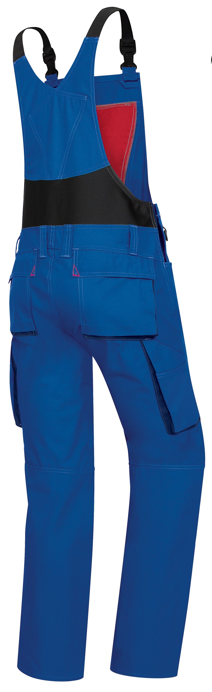 - Stretchträger mit Kunststoff-Steckschnallen, doppelte Latztasche mit Reißverschluss und Taschenklappe, 2 Stifttaschen, hochgezogener Rücken mit Stretcheinsatz für mehr Bewegungsfreiheit, regulierbare Bundweite