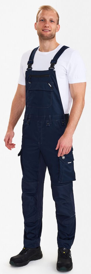 Dehnbare, funktionelle Latzhose mit schmaler Passform und vielen praktischen Details. Ergonomisch geformte Knie und Panel an der Innennaht für noch mehr Tragekomfort. Das Stretchgewebe macht die Hose bequem, zudem sorgen Einsätze aus extrem dehnbarem, atmungsaktivem Material in Kniekehlen und Innennaht- Zwickel für extra hohen Tragekomfort. Elastisch an den Seiten für bessere Passform. Breites, elastisches Rückenteil und verstellbare Träger. Reißverschlusstasche am Latz sowie Außentasche am Latz mit Patte. Die Außentasche am Latz hat Fächer (z. B. für Stifte). Unter der Taschenpatte befindet sich eine Schlaufe mit D-Ring zur Befestigung einer ID-Karte. Knöpfe zur einfachen Befestigung von Holstertaschen (9360-307) Zwei geräumige, schräg sitzende Einschubtaschen vorne. Zwei Gesäßtaschen mit Patte. Handytasche mit Patte am rechten Oberschenkel. Links sitzt eine Schenkeltasche mit Patte. Die Schenkeltasche besitzt ein zusätzliches Fach mit Reißverschluss. Verstärkte Zollstocktasche mit zusätzlichen Fächern und Werkzeugschlaufen. Schenkeltasche und Zollstocktasche mit freihängendem Boden gewähren optimale Bewegungsfreiheit. Knieverstärkung/Knietasche mit Klettverschluss unten und mit zwei Einstellmöglichkeiten für höhenverstellbare Knieschutzkissen. Verstärkter Saum der Hosenbeine für extra hohe Verschleißfestigkeit. Gute Sichtbarkeit durch Reflexpaspeln mittig hinten auf den Hosenbeinen. Extra breiter Hosenaufschlag ermöglicht bei Bedarf eine Verlängerung der Schrittlänge. Für die Verlängerung der Schrittlänge ist bloß ein Saum aufzutrennen, dahinter kommt ein zusätzlicher Saum zum Vorschein.