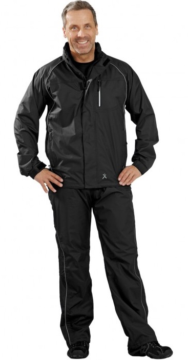 Atmungsaktiv, wasserdicht, Nähte hinterklebt. 2 seitliche Taschen mit verdecktem Reißverschluss, 1 Brusttasche mit Reißverschluss, Reflexbiesen als Applikationen, 1 Innentasche, 1 Handytasche, einrollbare Kapuze im Kragen, verstellbare Ärmelbündchen mit Gummizug, Kordelzug im Saum.