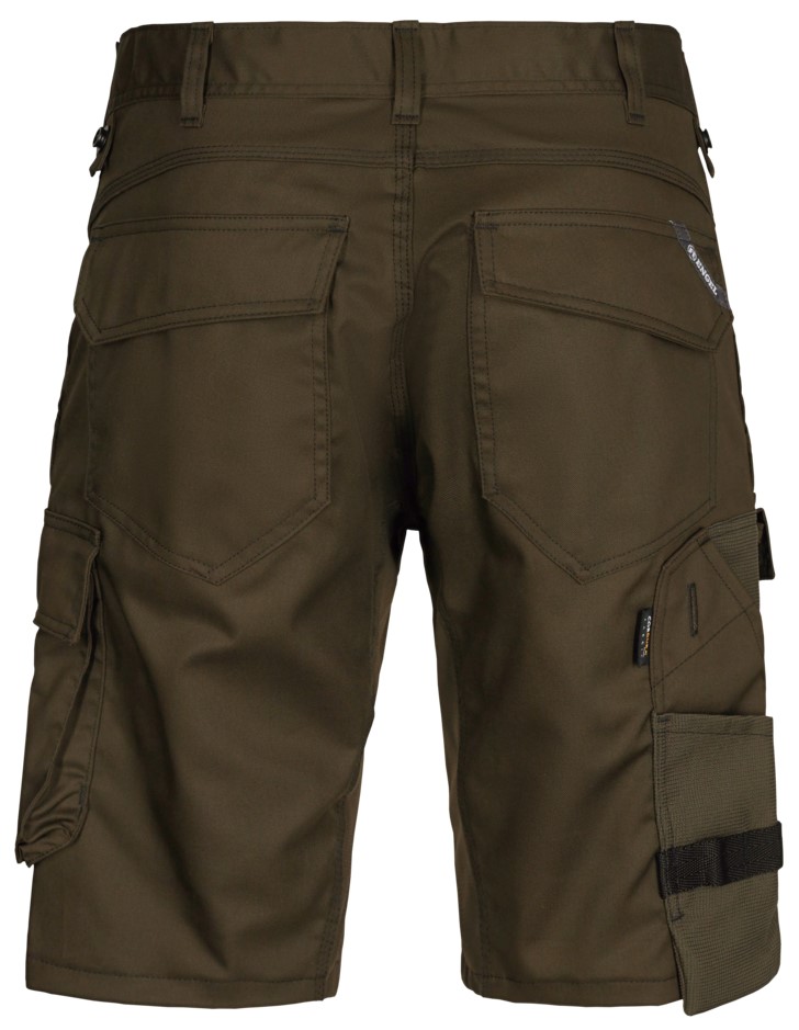 Funktionelle Handwerkershorts aus Stretch mit schmaler Passform und vielen praktischen Details. Einsätze aus extrem elastischem, atmungsaktivem Stretchmaterial im Innennaht-Panel sorgen für noch mehr Tragekomfort. D-Ring vorne, z. B. für eine ID-Karte. Zwei Gesäßtaschen. Handytasche mit Patte am rechten Oberschenkel. Links sitzt eine Schenkeltasche mit Patte. Die Schenkeltasche besitzt ein zusätzliches Fach mit Reißverschluss. Verstärkte Zollstocktasche mit zusätzlichen Fächern und Werkzeugschlaufen. Schenkeltasche und Zollstocktasche mit freihängendem Boden gewähren optimale Bewegungsfreiheit. Es können moderne Holstertaschen (9360-307) angebracht werden.