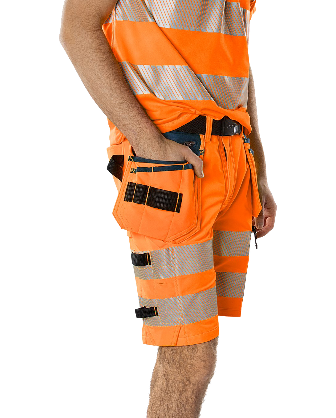 Nachhaltige, gut sichtbare Handwerker-Stretch-Shorts aus biobasierten und recycelten Materialien. Vollständiger 4-Wege-Stretch und zusätzliche Stretcheinsätze am Bund bieten hervorragenden Komfort und Bewegungsfreiheit. Mit EPD (Environmental Product Declaration). Konzept: Stiby