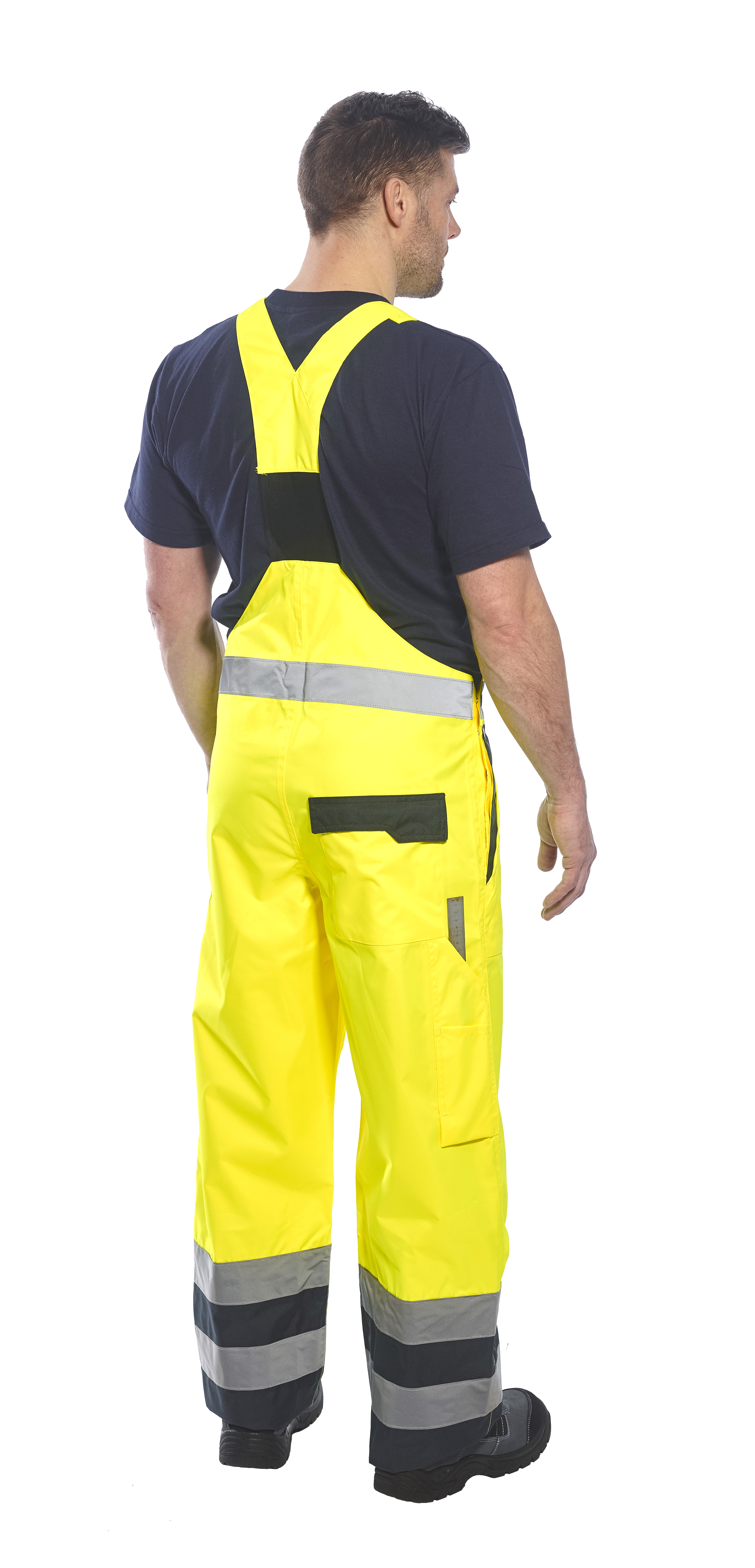 Die Kontrast-Latzhose schützt vor Nässe sowie Kälte. Zertifiziert nach EN ISO 20471 Klasse 2.