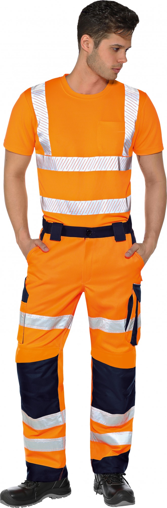 Produktinformationen "Vizwell VWTC113O Warnschutz Kontrast Bundhose leuchtorange-marine"