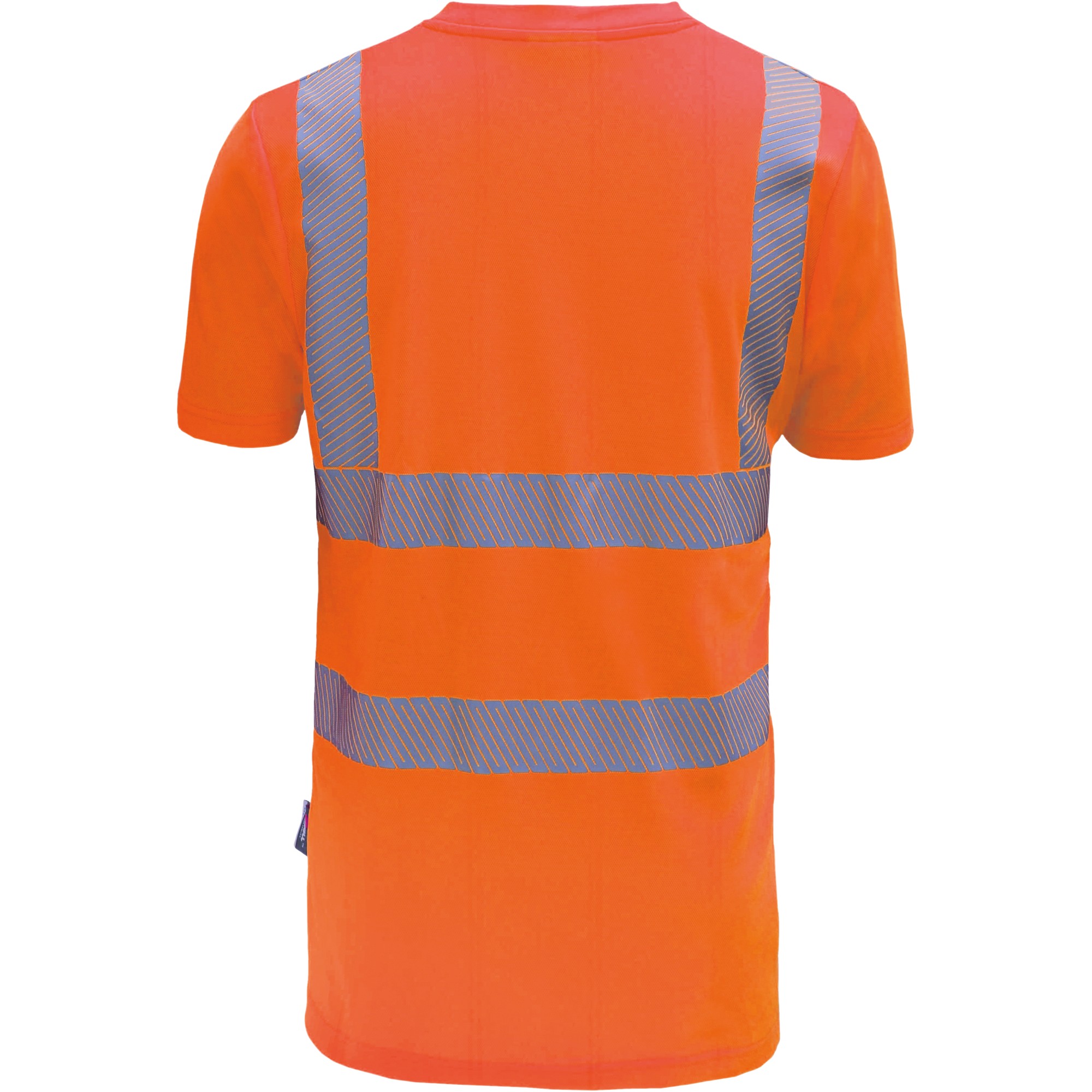 Das Vizwell VWT313 T-Shirt mit einem hohen Baumwollanteil für ein angenehmes Tragefühl, UPF 50+ und anti-bakterielle Ausrüstung, 2 x 5 cm breite Reflektorstreifen umlaufend am Rumpf sowie je 1 x 5 cm an den Schultern, segmentiert für höhere Dehnbarkeit. Rundhals mit Nackenband, Netzmaterial unter dem Arm für maximale Belüftung.