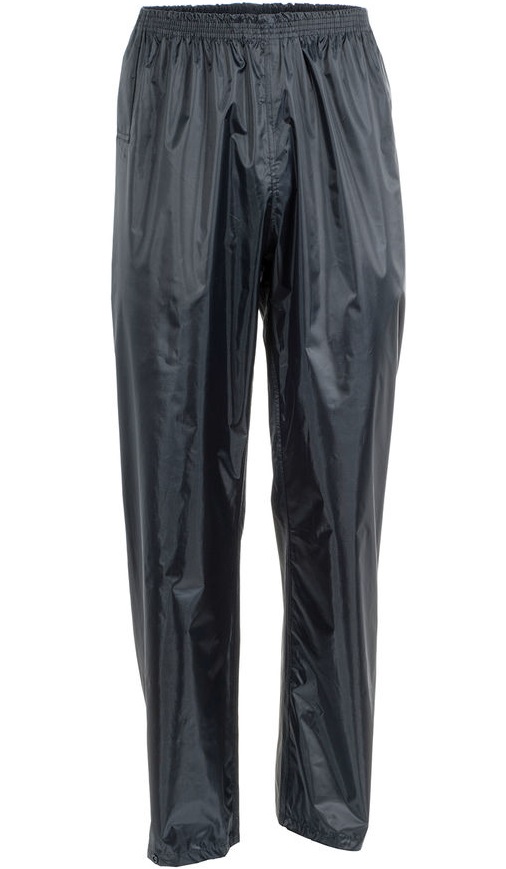 Bestehend aus Jacke und Hose in einer handlichen Tasche verpackt. Wasserdicht, PVC-beschichtet, Nähte hinterklebt. Jacke: 2 seitliche Taschen jeweils durch eine Patte verschlossen. Kapuze im Kragen, Reflexbiesen am Übergang der Raglanärmel, Bundweitenverstellung, Netzfutter im Nacken-/Schulterbereich. Hose: Gummizug im Bund, Taschendurchgriffe, Fußweite verstellbar.