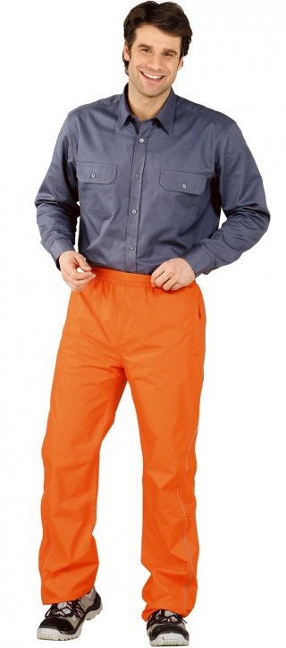 Atmungsaktiv, wasserdicht, Nähte hinterklebt, 2 Beuteltaschen mit Reißverschluss, 1 Gesäßtasche mit Reißverschluss, Reflexbiesen als Applikationen, elastischer Einsatz im Bund mit Kordelzug, Fußweitenverstellung mit Klettverschluss, Reißverschluss am Unterschenkel.