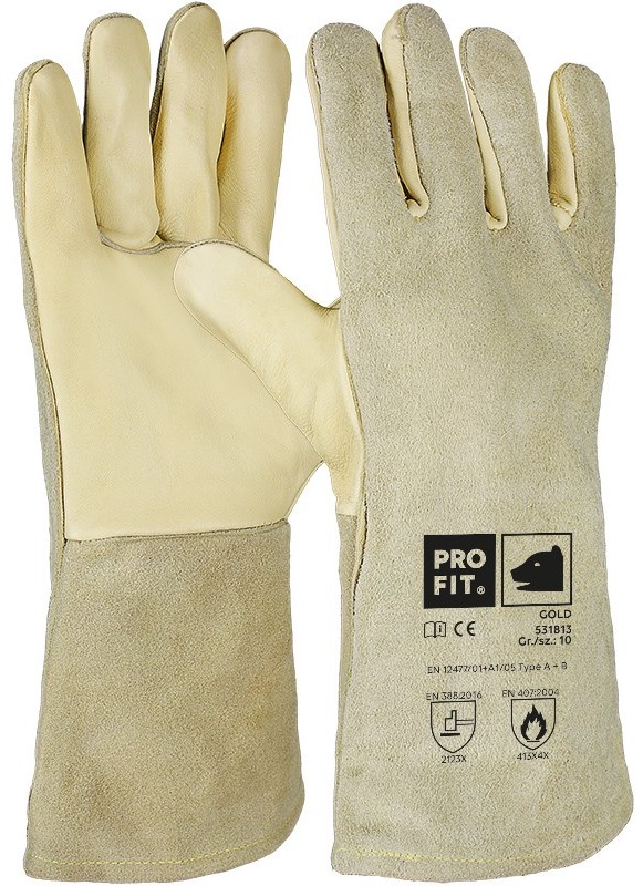 Produktinformationen "Pro-Fit 531813 Kombi Rindleder-Schweißerhandschuh Gold"