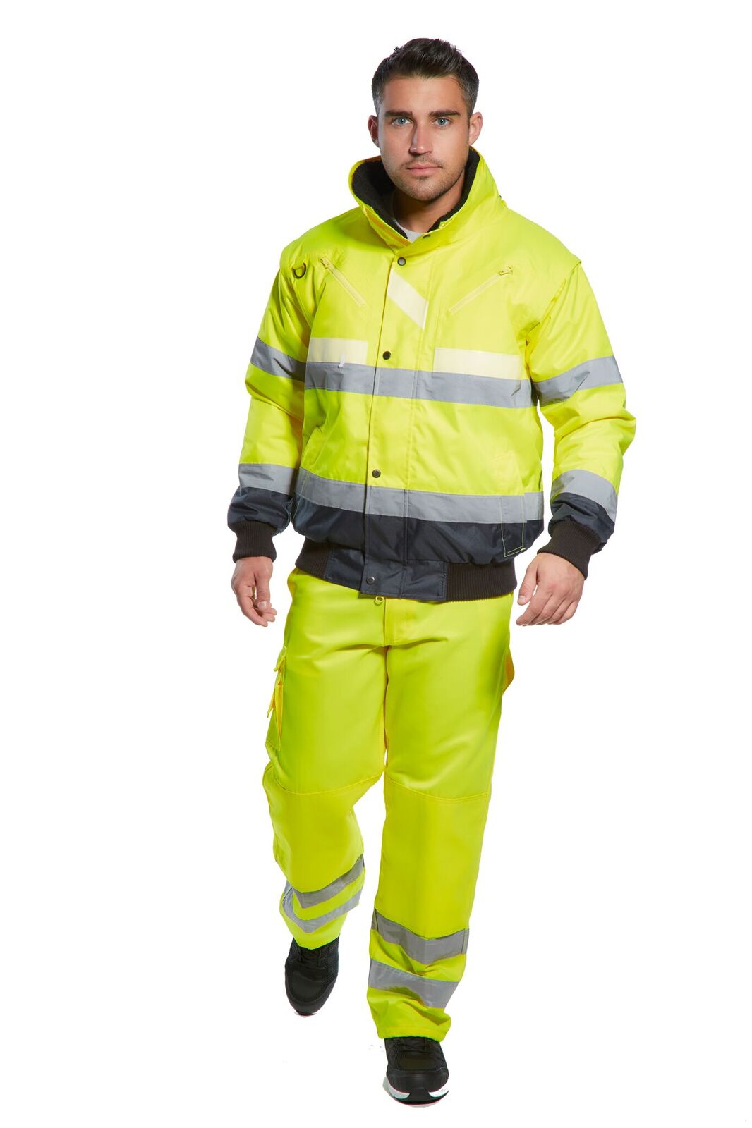 Diese 3-in-1 Pilotjacke nutzt unsere hochinnovative Dreifach-Technologie Glowtex-Funktion. Durch die Kombination von fluoreszierendem Gewebe, Warnschutz Reflexstreifen und Glowtex-Phosphoreszenzband, das im Dunkeln leuchtet. Das heraustrennbare Pelzfutter und der abnehmbare Kragen in Kombination mit den austrennbaren Ärmeln sorgen für eine vielseitige Anwendbarkeit.