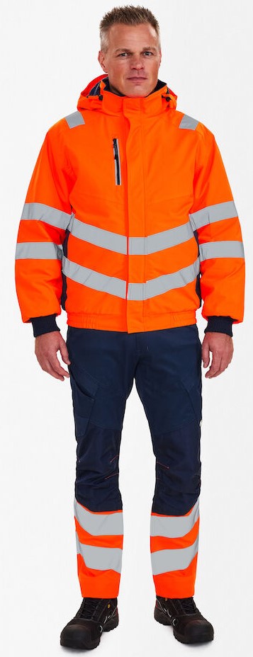 Fluoreszierende, atmungsaktive sowie wasser- und winddichte Pilotjacke mit verschweißten Nähten und im modernen Design. Doppelte Knopfleiste mit Reißverschluss sowie Klettverschluss vorne. Zwei geräumige Seitentaschen sowie Brusttasche mit Reißverschluss. Zwei Innentaschen, eine davon mit Reißverschluss. Abnehmbare, verstellbare Kapuze mit ausreichend Platz für den Arbeitshelm. Elastischer Saum unten und Rippstrick am Ärmelabschluss. Reißverschluss im Futter, der sich für Aufdruck/Stickerei eignet. Reflexstreifen über die Schulterpartie hinweg sowie rund um Ärmel und Körper. Bekleidungsklasse 3. Nach 50 mal Waschen getestet.