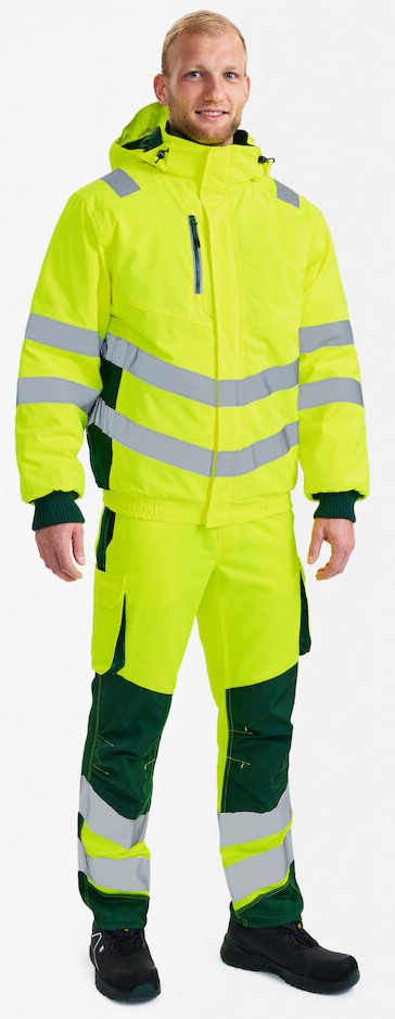 Fluoreszierende, atmungsaktive sowie wasser- und winddichte Pilotjacke mit verschweißten Nähten und im modernen Design. Doppelte Knopfleiste mit Reißverschluss sowie Klettverschluss vorne. Zwei geräumige Seitentaschen sowie Brusttasche mit Reißverschluss. Zwei Innentaschen, eine davon mit Reißverschluss. Abnehmbare, verstellbare Kapuze mit ausreichend Platz für den Arbeitshelm. Elastischer Saum unten und Rippstrick am Ärmelabschluss. Reißverschluss im Futter, der sich für Aufdruck/Stickerei eignet. Reflexstreifen über die Schulterpartie hinweg sowie rund um Ärmel und Körper. Bekleidungsklasse 3. Nach 50 mal Waschen getestet.