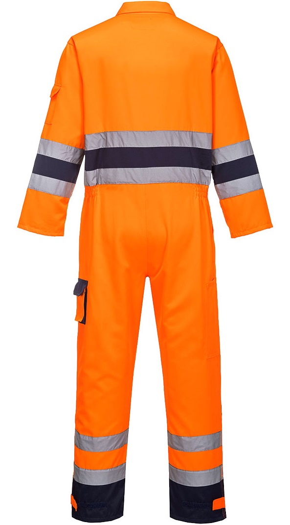 Dieser moderne Overall bietet Rundum-Schutz für Jeden, der in der Nähe von Autobahnen oder Verkehrspunkten arbeitet. Nützliche Details schließen Kniepolstertaschen und ein elastisches Rückenteil für mehr Bewegungsfreiheit mit ein.
