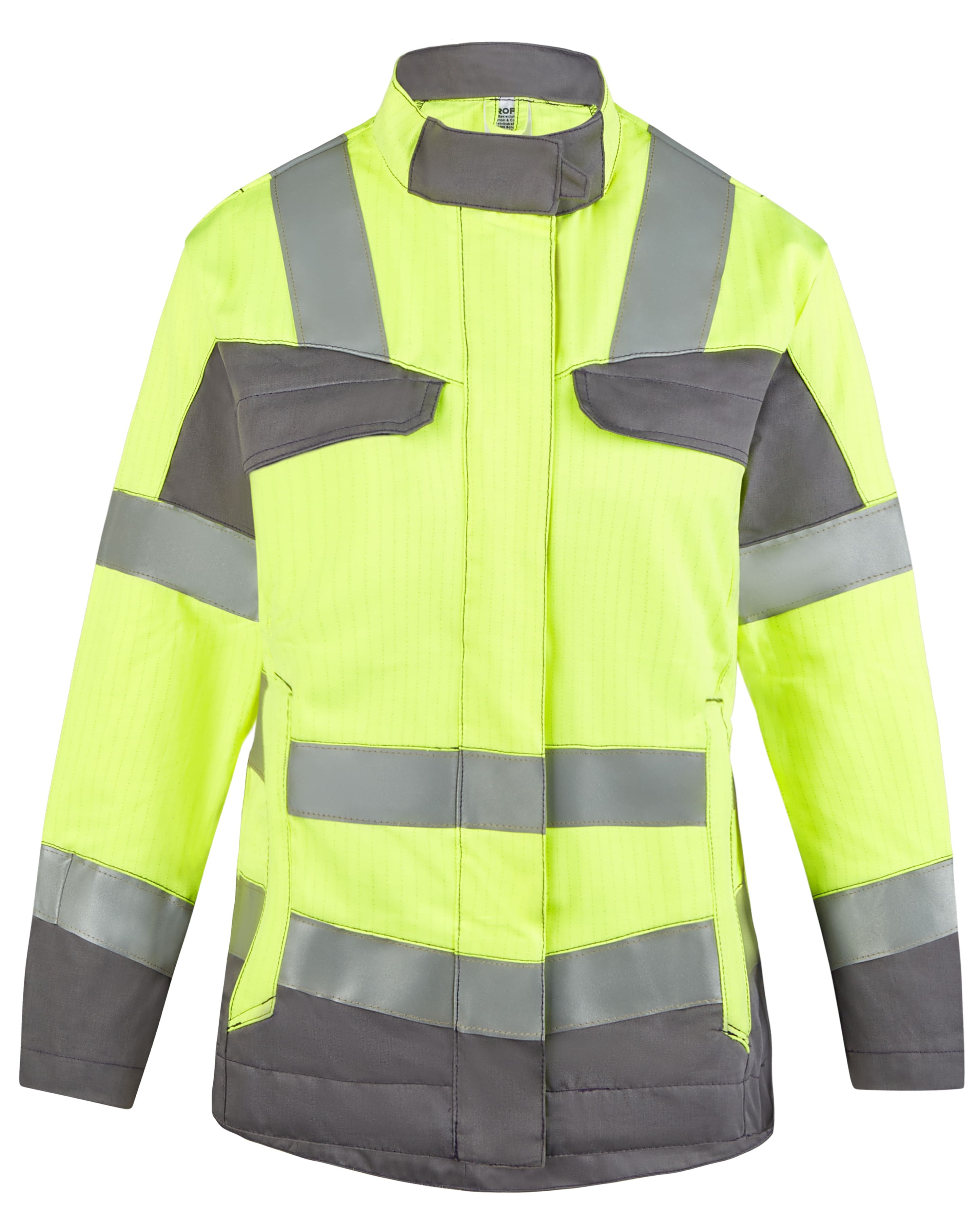 Stehkragen • vordere Mitte mit Reißverschluss und Druckknöpfen • 2 Brusttaschen mit Patte und Druckknopf • Ärmelabschluss weitenverstellbar durch Druckknöpfe • 2 Seitentaschen mit Reißverschlus • Bewegungsfalten im Rückenteil • verlängerter Rücken • 2 Brustinnentaschen mit Klett • 2 große Innentaschen • 50 mm Reflexstreifen um Rumpf, Ärmel und über Schulter • 25 mm Reflexstreifen am hinteren Kragen
