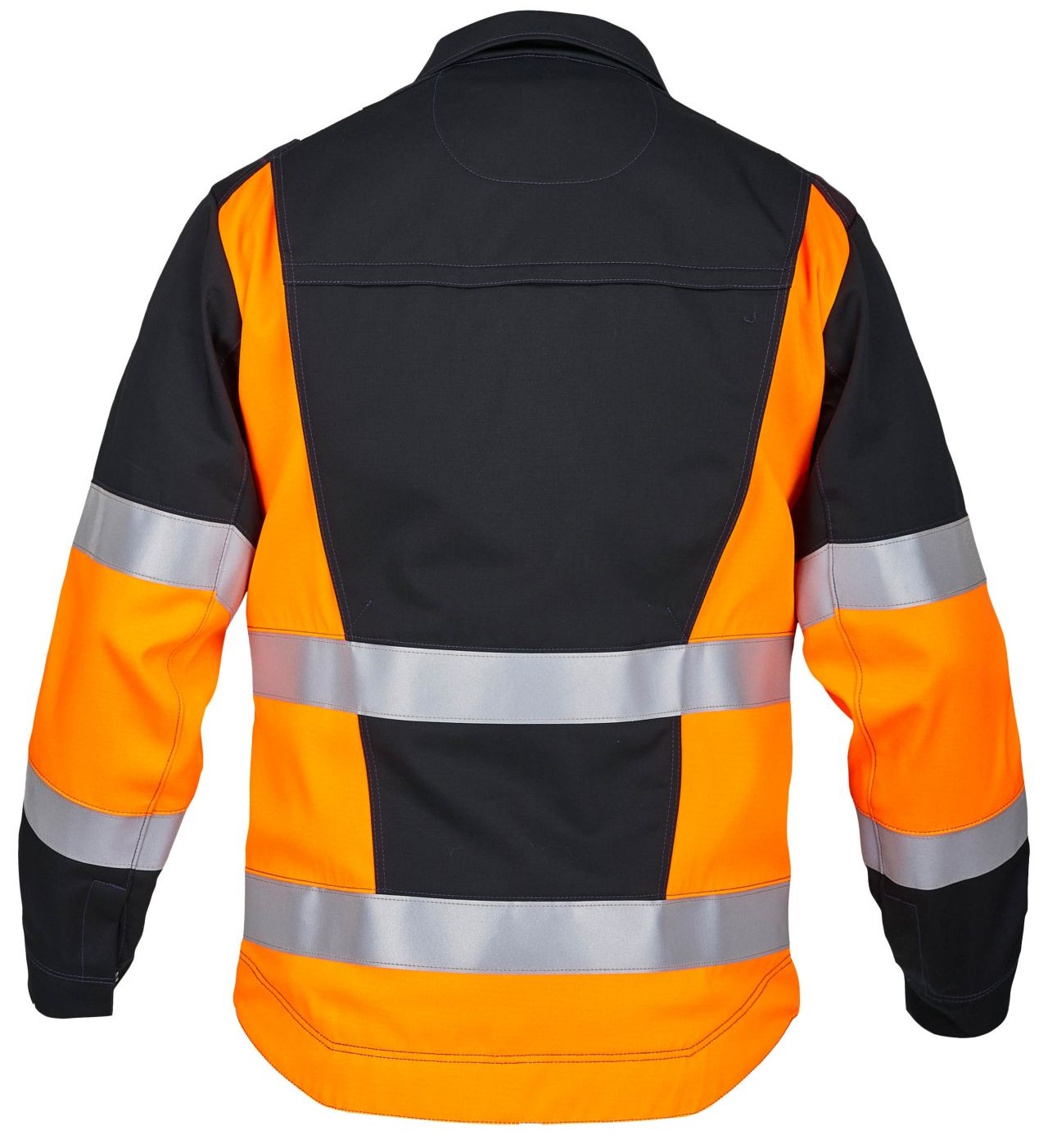 Die ROFA VIS-LINE I Jacke aus flammhemmendem Proban®Gewebe bietet hohen Schutz bei Gefährdung durch Hitze und Flammen und eignet sich besonders bei Arbeiten bei denen eine hohe Sichtbarkeit gefordert wird. Die Jacke schützt zudem bei Schweißarbeiten und bei Gefährdung durch die thermischen Gefahren eines elektrischen Lichtbogens. Dazu besitzt die Jacke elektrostatisch ableitfähige Eigenschaften und schützt vor kleinen Mengen versprühter oder verspritzter Chemikalien. Die Ärmel mit extra Hebelänge und weitenverstellbarem Ärmelabschluss, der verlängerte Rücken und die Bewegungsfalten im Rücken schaffen viel Bewegungsfreiheit und ein besonders angenehmes Tragegefühl. Reflexstreifen und -paspeln am Vorder- und Rückenteil sorgen für ein dynamisches Erscheinungsbild und optimale Sichtbarkeit.