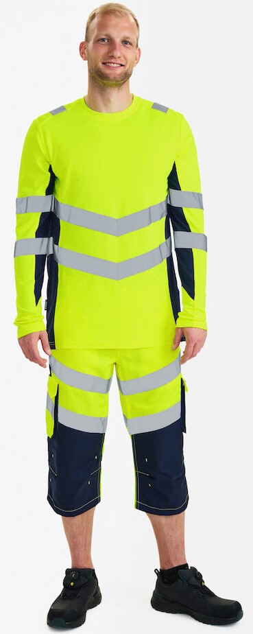 Bequemes und schickes, langärmeliges T-Shirt mit Warnschutzfunktion im modernen Design. Das T-Shirt besteht aus bequemem Pikee-Stoff mit Baumwolle auf der Innenseite für mehr Komfort. Rippstrick am Halsausschnitt. Reflexstreifen an der Schulterpartie sowie rund um Ärmel und Taille. Bekleidungsklasse 2. Nach 25 mal Waschen getestet.