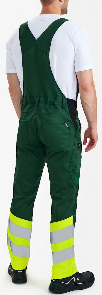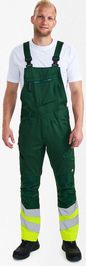 Dehnbare und funktionelle fluoreszierende Latzhose im modernen Design. Der dehnbare Stoff sorgt für optimale Bewegungsfreiheit und Komfort. Optimale Passform mit u. a. ergonomisch geformtem Kniebereich. Hoch geschnittenes Rückenteil und Rippstrickeinsätze an den Seiten sorgen für optimale Passform und Tragekomfort. Verstellbare Träger. Latztasche mit Reißverschluss. Latzinnentasche mit Reißverschluss. Zwei Gesäßtaschen. Zwei Schenkeltaschen mit Reißverschluss. Die linke Schenkeltasche hat eine zusätzliche Handytasche. Die rechte Schenkeltasche hat eine aufgesetzte Zollstocktasche mit zusätzlichen Unterteilungen. D-Ring an der Latztasche für die Befestigung von z. B. Ausweisen. Knieverstärkung/Knietasche mit Klettverschluss unten und besteht aus CORDURA®-Material. Breiter Saum unten, der ausgelassen werden kann, wenn zusätzliche Beinlänge erforderlich ist. Um die Hose zu verlängern, muss lediglich eine Naht aufgetrennt werden. Das Hosenbein ist trotzdem noch gesäumt. Bekleidungsklasse 2. Nach 50 mal Waschen getestet