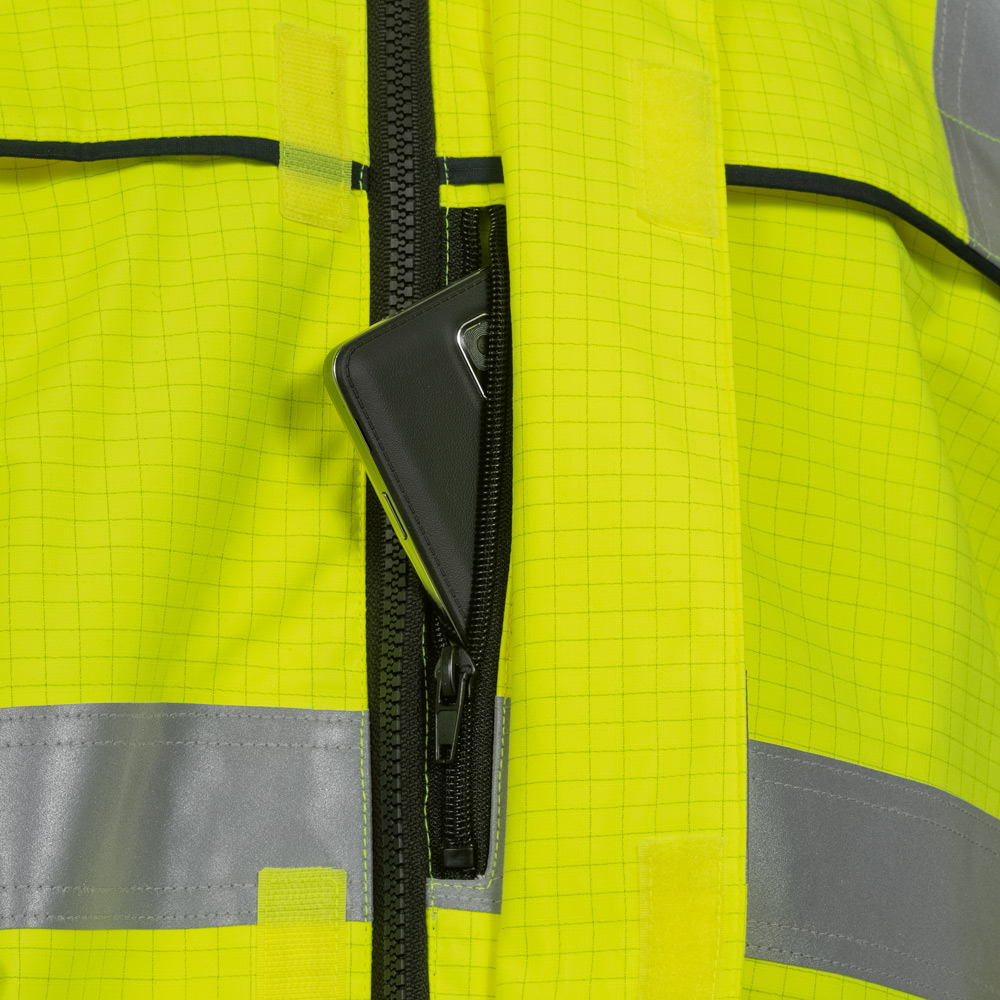 - der Parka ist von außen als Multinorm- Schutzbekleidung erkennbar durch das Multinorm-Emblem auf dem linken Oberarm