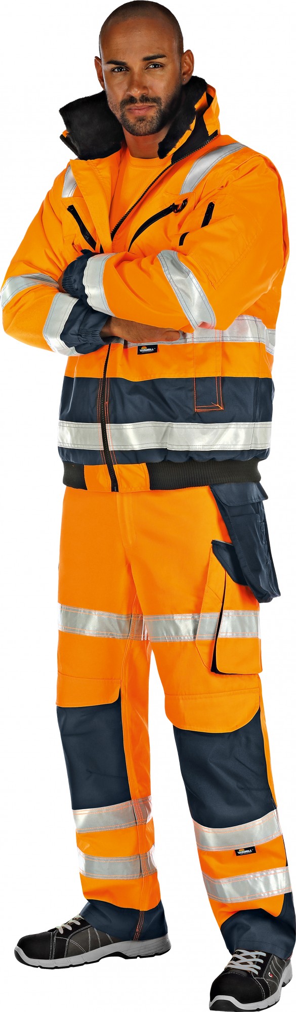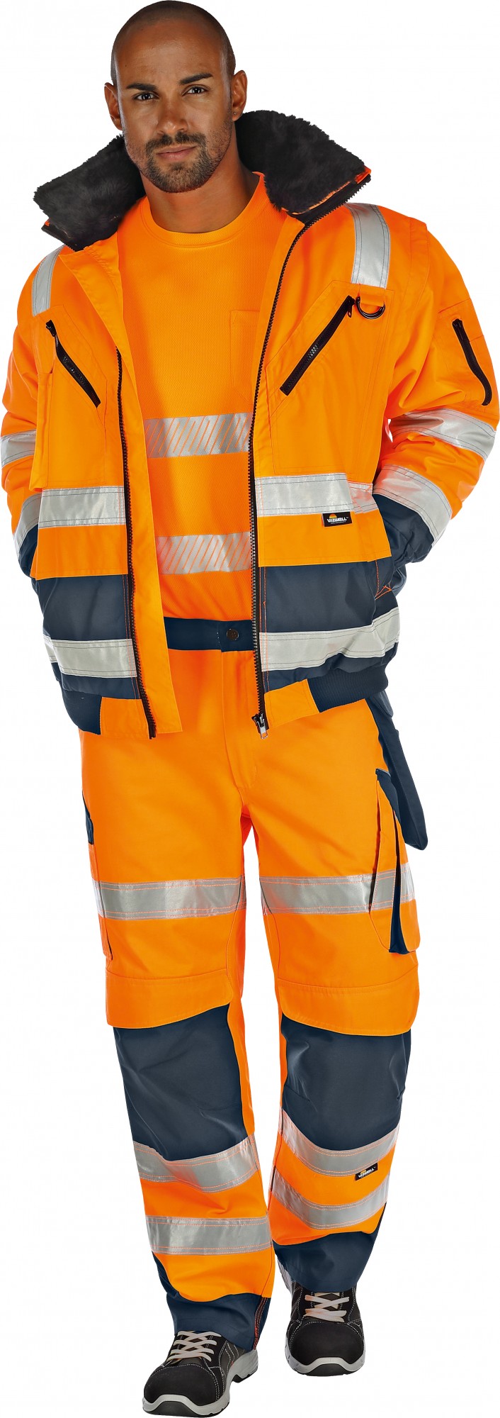 Vizwell VW126CO Warnschutz-Pilotenjacke 4 in 1 leuchtorange-marine