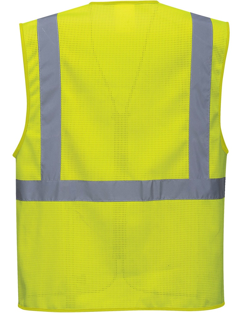 Die fortschrittliche MeshAir-Technologie sorgt für einen hervorragende Atmungsaktivität und hält den Träger jederzeit kühl. MeshAir Gewebe ist konform mit EN ISO 20471. Diese Weste schließt klassische Executivmerkmale einschließlich mehreren Taschen, Identifikation-Halter, Mikrofonschlaufe und Reißverschluss vor für einfaches Anziehen ein.