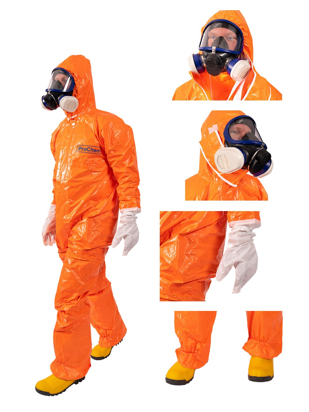 Der ProChem® I wird vornehmlich in der Industrie- und Tankreinigung, bei Inspektionsarbeiten und bei Einsätzen von Feuerwehren und Rettungskräften verwendet. Gummizüge an Ärmeln, Beinen und Kapuze sowie ein Taillengummi sorgen für eine optimale Passform und der großzügig geschnittene Schrittbereich für optimale Bewegungsfreiheit. Die ergonomische Kapuze und die erhöhte doppelte Abdeckblende mit Klettverschluss über dem Reißverschluss bis zum Kinn bieten zusätzlichen Schutz. Elastische Daumenschlaufen verhindern das Hochrutschen der Ärmel bei Überkopfarbeiten.