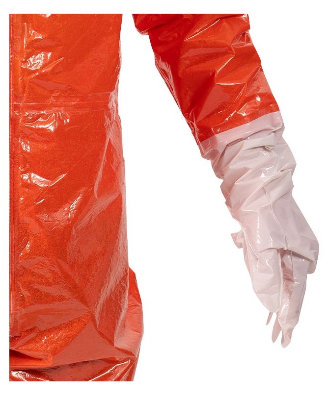 Fest angearbeitete ANSELL Barrier Laminathandschuh mit Schutzstulpe runden den Anzug ab und bieten eine anatomische Passform, sowie Schutz vor einem äußerst breiten Spektrum von Chemikalien und Flüssigkeiten.