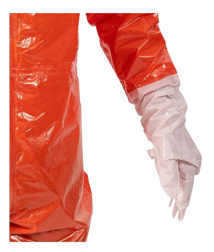 Fest angearbeitete ANSELL Barrier Laminathandschuh mit Schutzstulpe runden den Anzug ab und bieten eine anatomische Passform, sowie Schutz vor einem äußerst breiten Spektrum von Chemikalien und Flüssigkeiten.