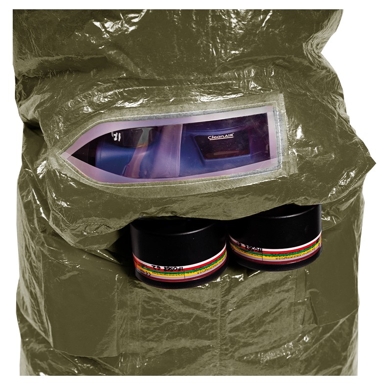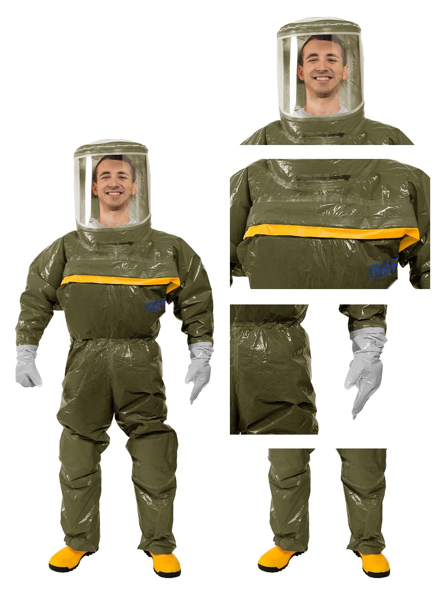 Der Vollschutzoverall ProChem® III wird mit Gebläseatemschutz (PAPR Unit) betrieben, der kontaminationsfrei unter dem Overall getragen wird. Die doppelte Abdeckblende des Fronteinstiegs wird per Wickelblende verschlossen. Gummizüge an Ärmeln und Beinen sowie ein Taillengummi sorgen für eine optimale Passform und der großzügig geschnittene Schrittbereich für optimale Bewegungsfreiheit. Das Panoramavisier ermöglicht eine perfekte Rundumsicht und bietet genügend Platz für Helme oder Kommunikationssysteme. Das Gebläse ermöglicht lange Einsätze und gute Luftverteilung durch Ausatemventile.