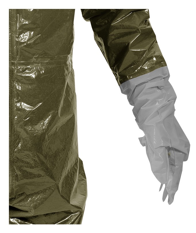 Fest angearbeitete RESPIREX Kemblok Laminathandschuh, welche gut als Innenhandschuh unter robusten Handschuhen getragen werden können und silikon- und latexfrei sind, runden den Anzug ab. Das siebenschichtige Material bietet hervorragenden Schutz vor einem breiten Spektrum an Chemikalien.