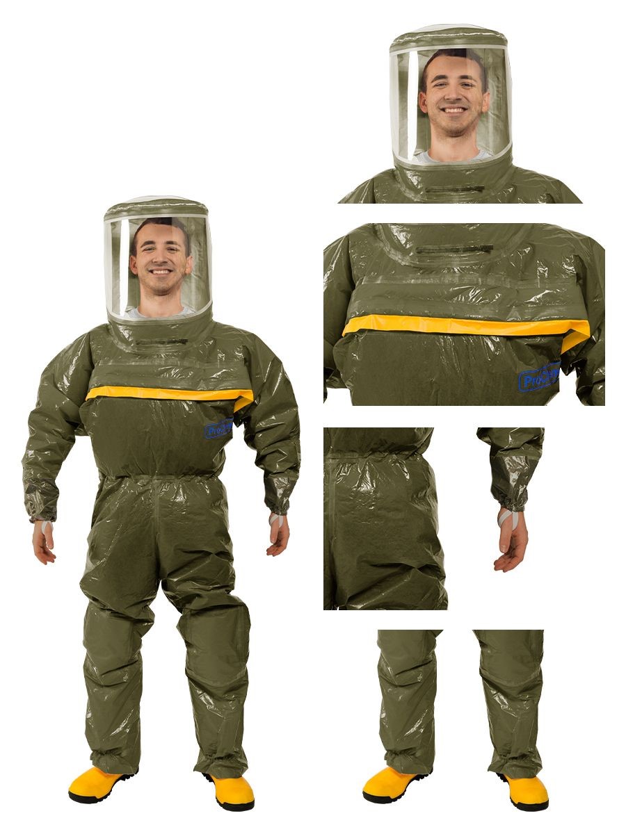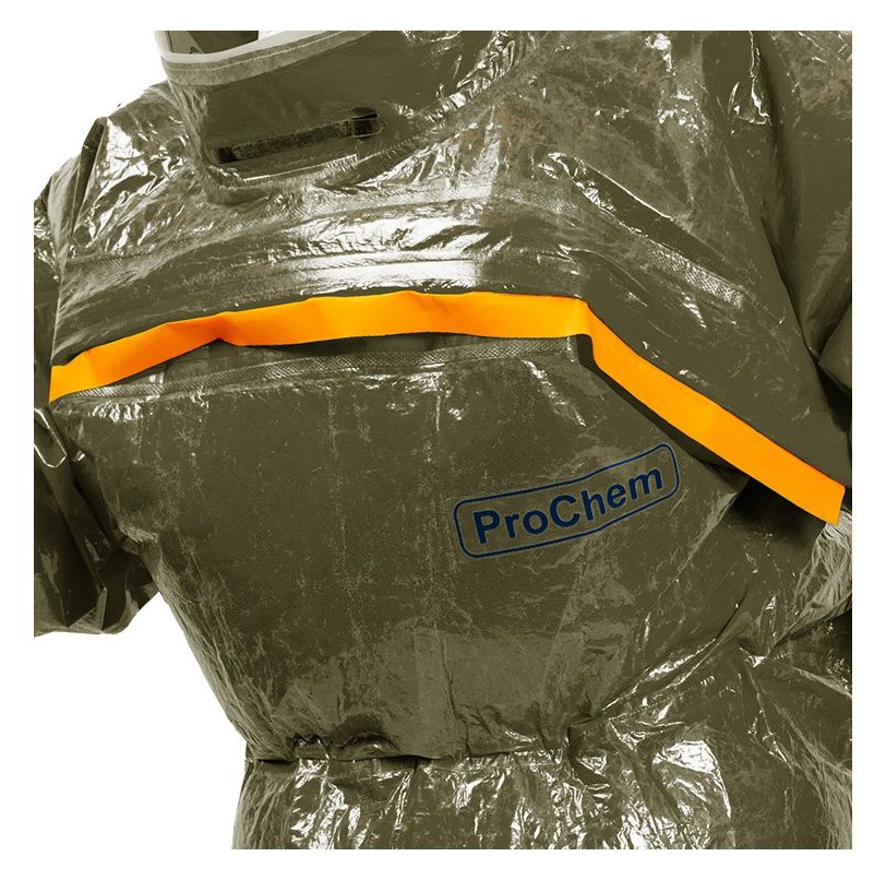 Der Vollschutzoverall ProChem® III wird mit Gebläseatemschutz (PAPR Unit) betrieben, der kontaminationsfrei unter dem Overall getragen wird. Die doppelte Abdeckblende des Fronteinstiegs wird per Wickelblende verschlossen. Gummizüge an Ärmeln und Beinen sowie ein Taillengummi sorgen für eine optimale Passform und der großzügig geschnittene Schrittbereich für optimale Bewegungsfreiheit. Das Panoramavisier ermöglicht eine perfekte Rundumsicht und bietet genügend Platz für Helme oder Kommunikationssysteme. Das Gebläse ermöglicht lange Einsätze und gute Luftverteilung durch Ausatemventile.