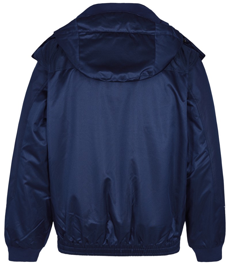 Single-coloured pilot jacket with double button placket with press studs and front zipper. Detachable fiber fur lining in the upper body area and detachable sleeves with quilted lining. Shoulders and sleeves reinforced with Oxford. Zippered pocket on the left chest, open pocket on the right chest (with phone pocket with flap). Two spacious front pockets. Inner pocket with zipper and pocket with space for the detachable hood. Adjustable collar with soft fleece lining. Ribbed cuffs and elasticated waistband. Zipper in the lining (option to add print/embroidery). Wind and water repellent.