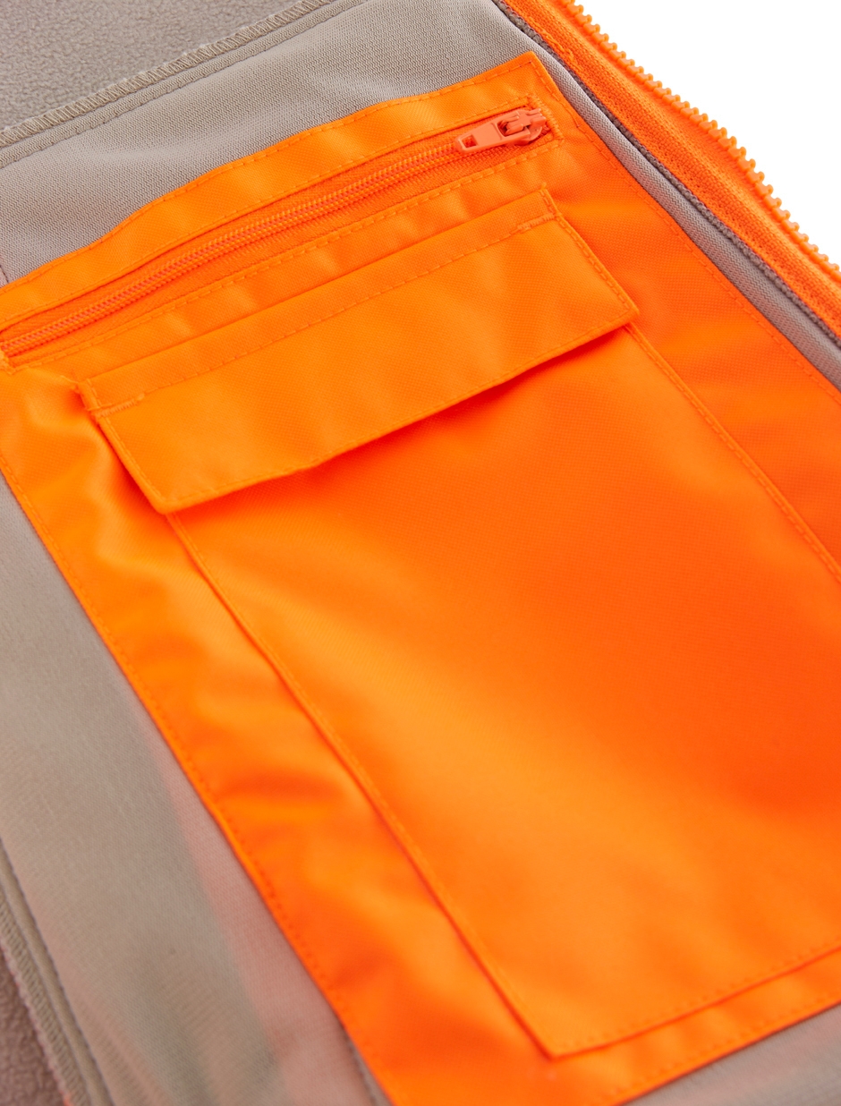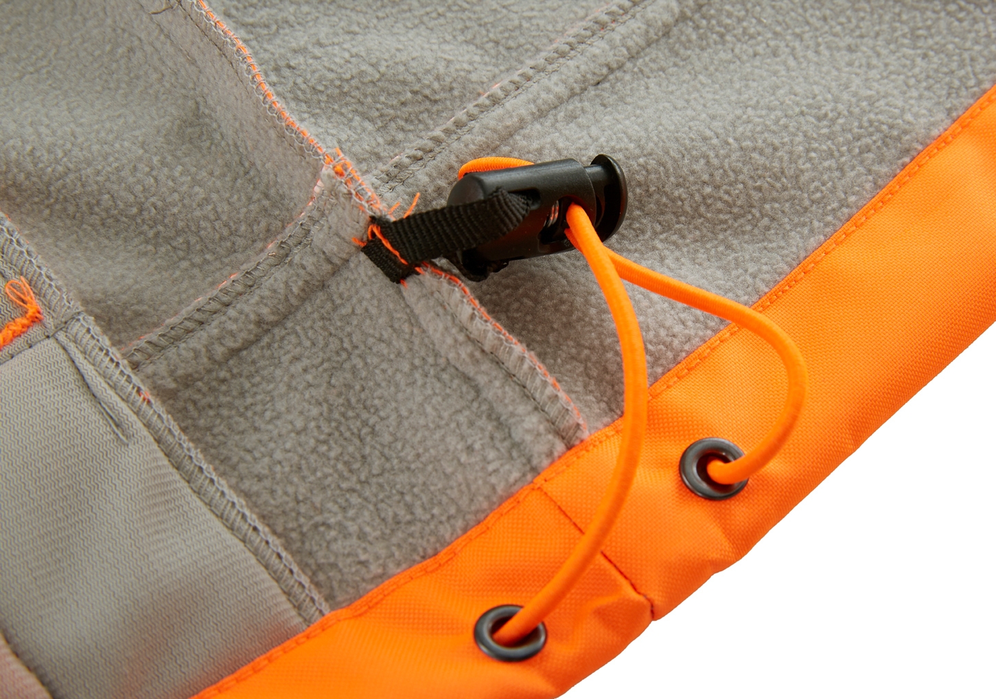 Comfortable to wear thanks to the combination of elastic fabric with a close-fitting cut. The integrated functional membrane guarantees a high level of waterproofness combined with good breathability of the fabric. The warming fleece lining protects the body from cooling down. The ripstop fabric is particularly tear-resistant and prevents further tearing in the event of small tears. Directly attached segmented reflective strips run around the body and shoulders and ensure a high level of safety and visibility.1 underlaid front zipper with chin guard. 1 chest pocket with waterproof reflective zipper, 2 lower covered zipper pockets. Drawstring hem, armholes with elasticated cuffs and high, fleece-lined collar. Elaborate interior finish with large inside pocket and cell phone pocket.