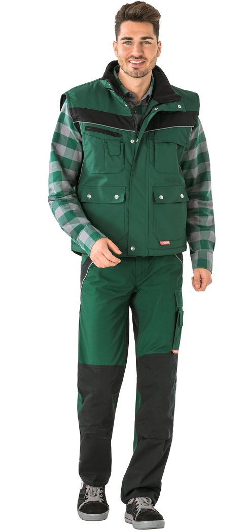 Breathable, water-repellent, glued seams, fleece collar, reflective piping as safety equipment, 1 breast pocket on the left with flap and Velcro fastener, double breast pocket on the right, mobile phone pocket on the right breast, 2 pen compartments, 2 side pockets, 2 patch side pockets, document pocket under the front flap, quilted lining, concealed front zip.