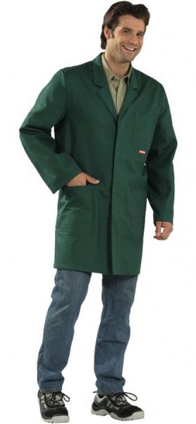 Individual for each job. Collar with lapel, 2 side pockets, 1 breast pocket, 1 inside pocket, concealed button placket, interchangeable buttons, back strap.