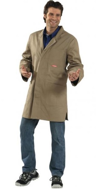 Individual for each job. Collar with lapel, 2 side pockets, 1 breast pocket, 1 inside pocket, concealed button placket, interchangeable buttons, back strap.