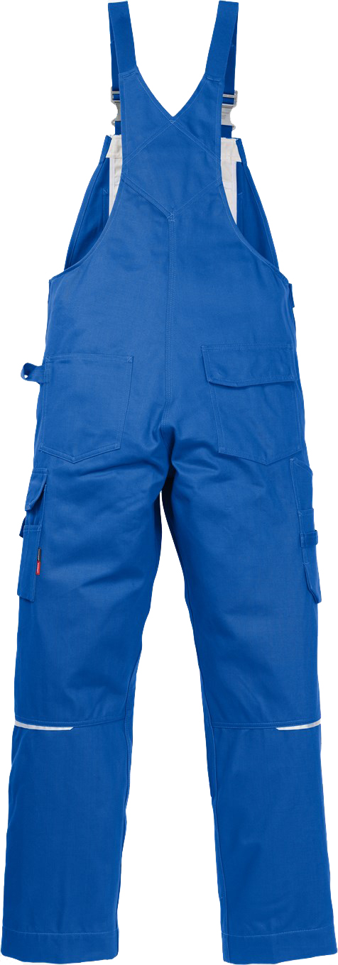 Dungarees with knee pockets for industrial work, made of 100% durable and comfortable cotton. Suitable for industrial laundering.
