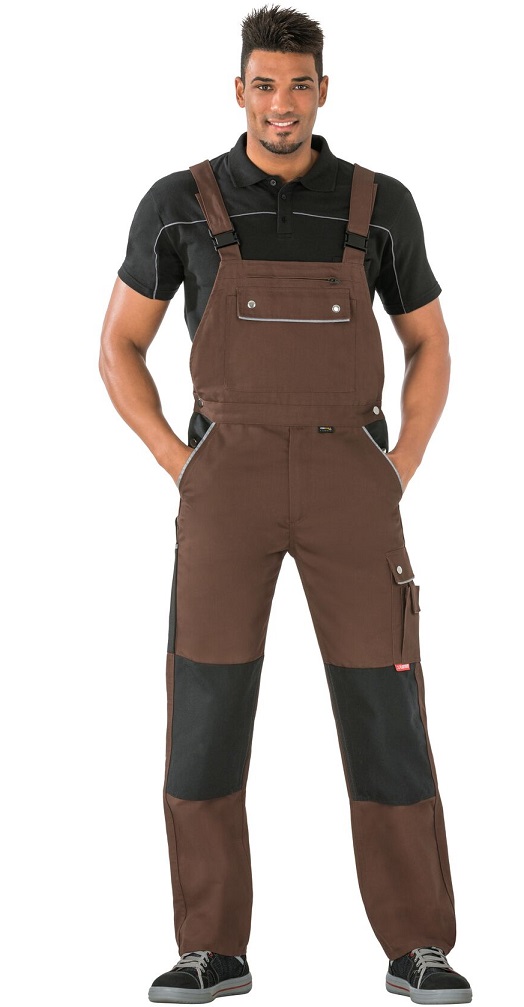 This article, in conjunction with a knee PLANAMpad (Art. No. 9901027), is certified as knee protection according to EN 14404 Type 2, Level 1. Knee pockets made of Cordura®, 2 set-in pouch pockets made of Cordura®, double ruler pocket made of Cordura® on the right, reflective piping on pocket openings and pocket flaps, thigh pocket on the left with flap and press studs, mobile phone pocket on top, double bib pocket, 1 with flap and press studs and 1 with zip, elasticated waistband, 1 reinforced hip pocket on the right, waistband width adjustment with jeans button, zip in trouser fly, raised back with cross straps, straps with elasticated elastic band insert, safety buckle on the straps.