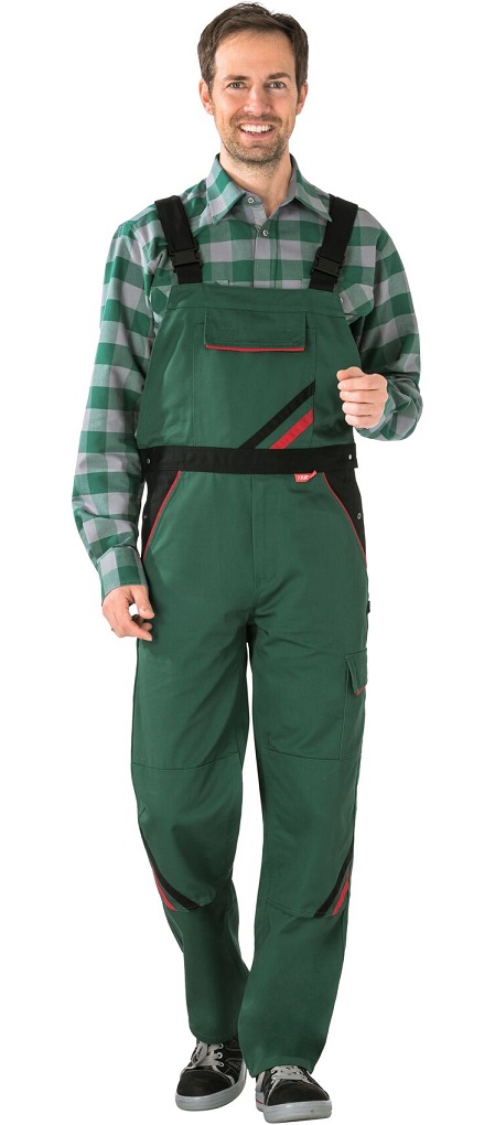 This article is certified as knee protection according to EN 14404 type 2, level 1 in combination with a knee PLANAMpad (art. no. 9901027). 2 set-in pouch pockets, 2 patch knee pockets with coloured applications, double ruler pocket, left thigh pocket with flap and Velcro fastener, mobile phone pocket, elasticated waistband, 2 hip pockets with flaps, zip in fly, pocket openings and pocket flaps with coloured piping.