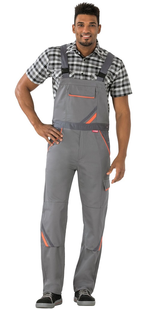 This article is certified in combination with a knee PLANAMpad (Art.-No. 9901027) as knee protection according to EN 14404 Type 2, Level 1. 2 set-in pouch pockets, 2 patch knee pockets with coloured applications, double ruler pocket, left thigh pocket with flap and Velcro closure, mobile phone pocket, bib pocket with flap and Velcro closure, coloured applications on bib pocket, elasticated waistband, 2 hip pockets with flaps, waist width adjustment with concealed press stud, zip in trouser fly, raised back with cross straps, straps with elastic band insert, safety buckle on the straps, pocket openings and pocket flaps with coloured piping.