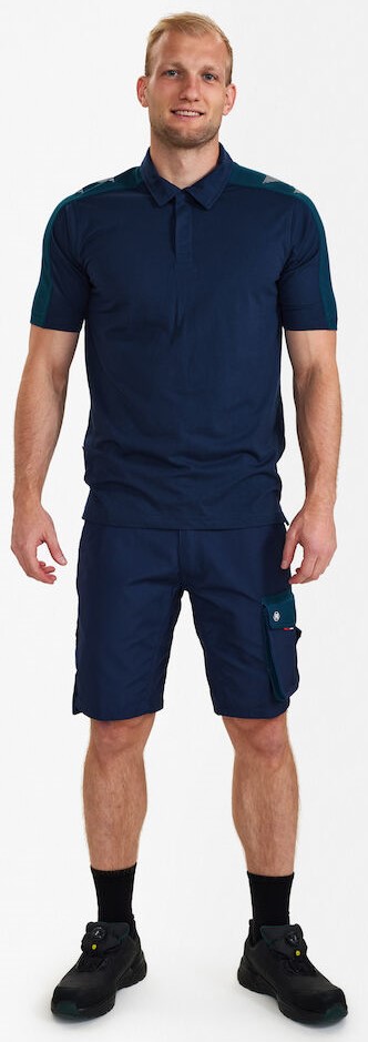 Stylish polo shirt in a two-tone design that matches the rest of the Galaxy range. The polo shirt has a button placket with concealed press studs and reinforced neck and shoulder seams. Pre-washed material ensures that the item retains its shape and the elastane content in the rib-knit cuffs means that they keep their shape even after many washes. The polo shirt has reflective prints on the shoulders for increased visibility.