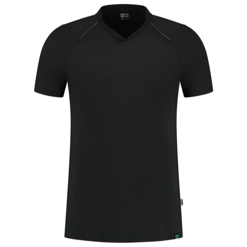 The sustainable V-neck T-shirt RE2050 is characterized by its sporty and modern design. Thanks to its light weight and fine stretch fabric, the shirt is very comfortable to wear. Polygiene® is used in this T-shirt; a permanent finish based on silver chloride that prevents unpleasant odors. The Polygiene finish ensures that the workwear smells fresh for a long time and therefore needs to be washed less often, which in turn saves water and energy and keeps the shirt looking good for longer. The reflective piping gives the T-shirt a sporty and modern look and makes the wearer particularly visible. There are mesh ventilation inserts under the armpits. The RE2050 V-neck T-shirt is part of the RE2050 collection: a sustainable and circular clothing package. It is made from 92% recycled polyester and 8% elastane. Thanks to the use of recycled PET bottles, we use around 90% less water during production than a shirt made from conventional polyester! This item is available in the colors Ink and