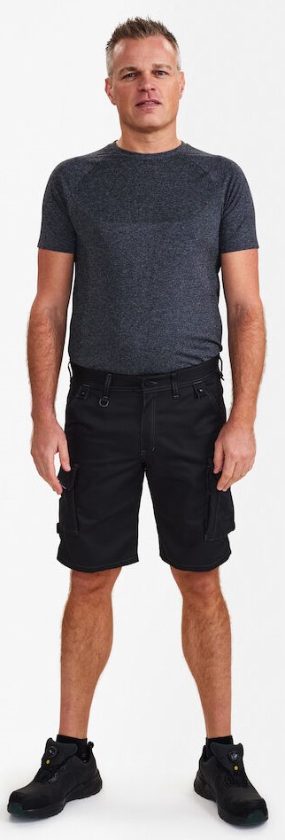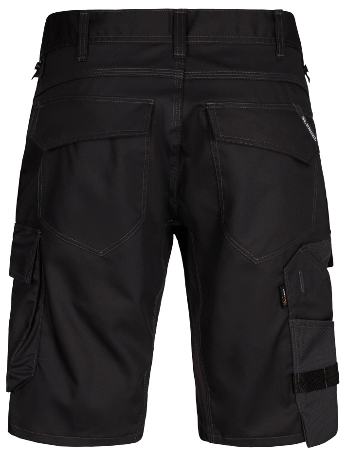 Functional craftsman shorts made of stretch with a slim fit and many practical details. Inserts made of extremely elastic, breathable stretch material in the inseam panel ensure even more comfort. D-ring at the front, e.g. for an ID card. Two back pockets. Cell phone pocket with flap on the right thigh. Left thigh pocket with flap. The thigh pocket has an additional zippered compartment. Reinforced folding rule pocket with additional compartments and tool loops. Thigh pocket and ruler pocket with free-hanging bottom ensure optimum freedom of movement. Modern holster pockets (9360-307) can be attached.