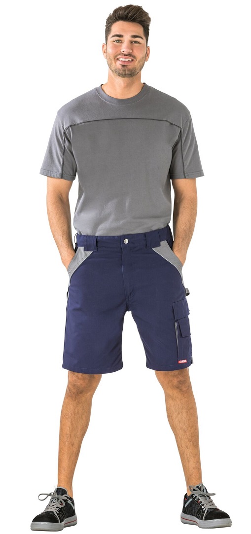 2 set-in pouch pockets, double ruler pocket on the right, thigh pocket on the left with flap and Velcro fastener, mobile phone pocket on the left, elasticated waistband, 2 hip pockets with flap and Velcro fastener, zip in trouser fly, reflective piping as safety equipment.