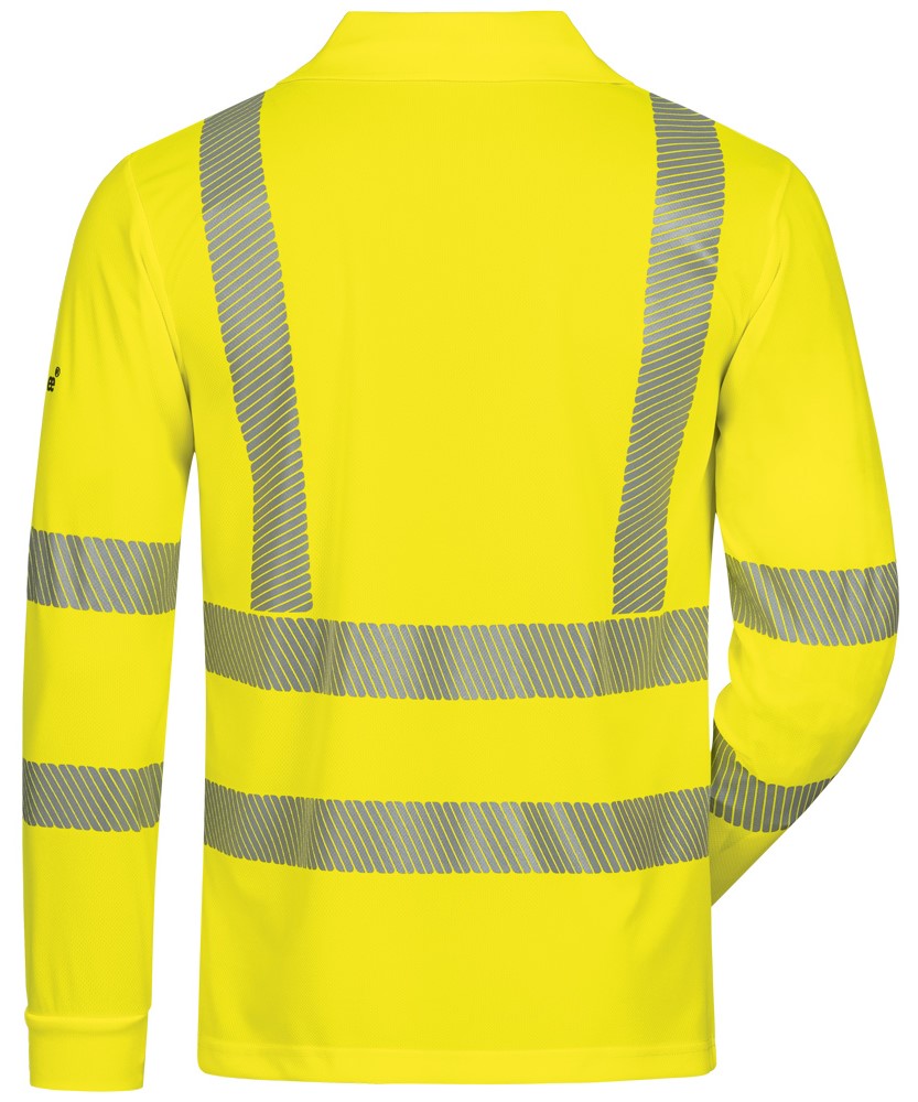 Standards: EN 20471 high-visibility protection class 2 EN 13758-2 EN ISO 13688 Other features: Material: 100% polyester weight approx. 150 g/m² environmentally friendly recycled polyester material is very light, especially comfortable to wear, breathable and moisture regulating thermofixed reflective stripes save additional seams and increase wearing comfort important UV protection for the summer months with a UV protection factor UPF 40+ purchase subsidizable by BG BAU sleeve ends with knitted cuffs collar, placket and buttons color-coordinated with the outer material Color: fluorescent yellow Sizes: S-4XL