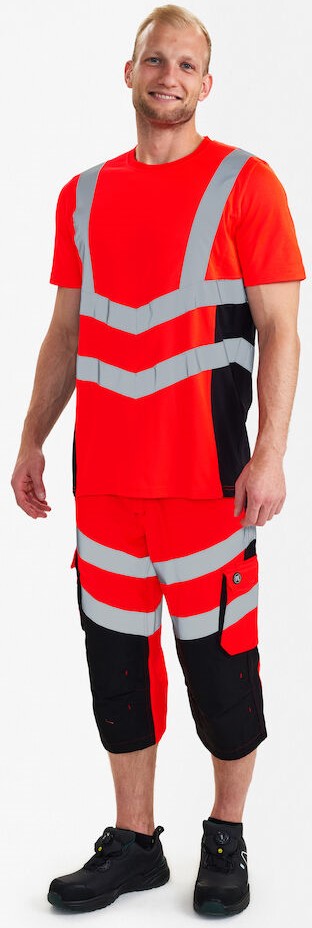 Comfortable and stylish T-shirt with high-visibility function in a modern design. The T-shirt is made of comfortable piqué fabric with cotton on the inside for greater comfort. Ribbed neckline. Reflective stripes across the shoulders and around the waist. Clothing class 2, tested after 25 washes.