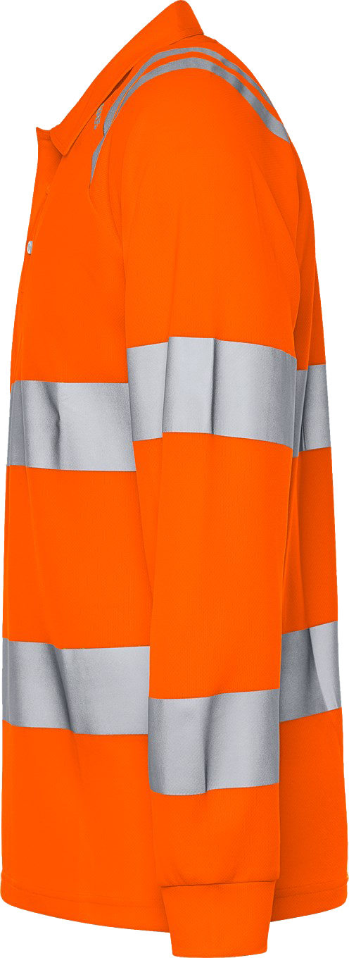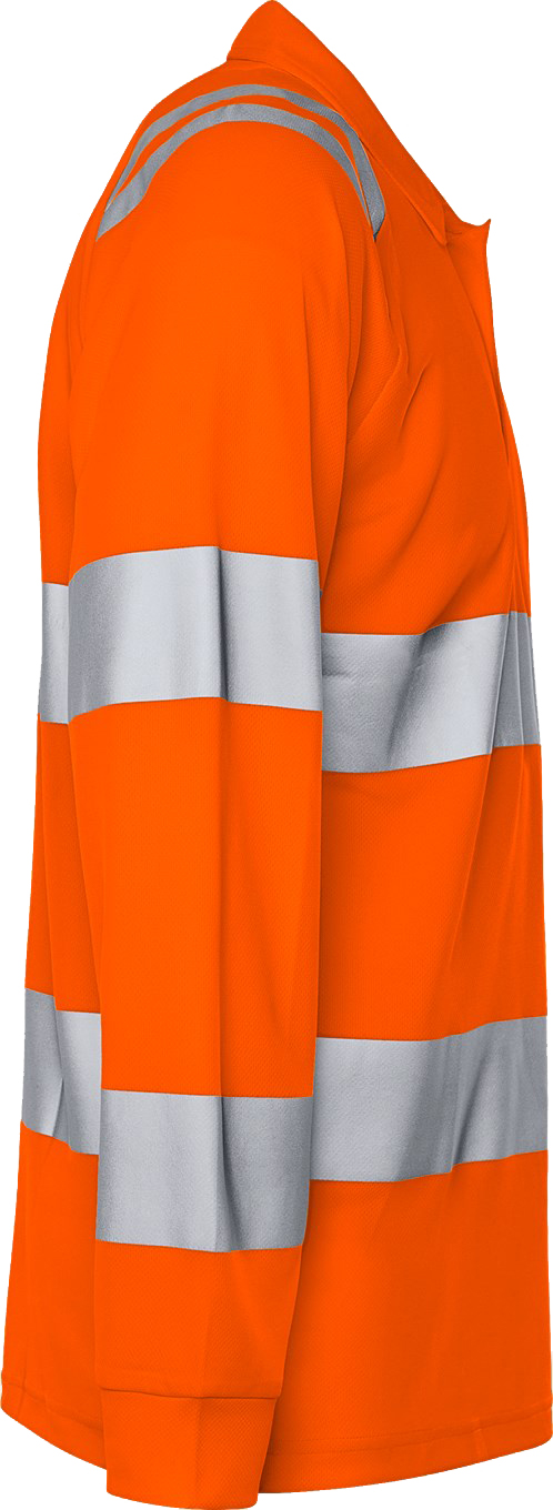 Long-sleeved high-vis polo shirt made from recycled material in a functional knit for improved breathability. The light and airy material offers high wearing comfort on warm working days. Concept: Trofta