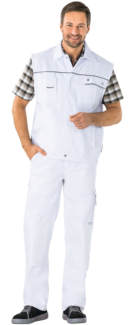 2 set-in Cordura® pouch pockets, reflective piping on shoulder saddle and pocket flaps, 2 breast pockets, left with flap and press studs, right with additional mobile phone pocket, elasticated waistband, concealed press stud front closure, hanger in collar.